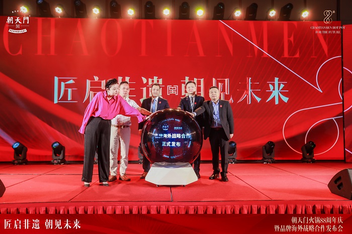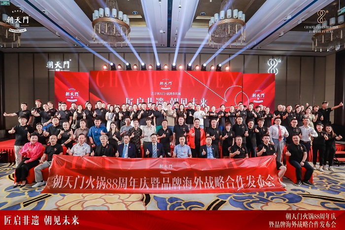 2023年8月8日,朝天門餐飲控股集團(tuán)旗下品牌朝天門火鍋“匠啟非遺朝見未來”88周年慶暨品牌海外戰(zhàn)略合作發(fā)布會(huì)圓滿結(jié)束,朝天門餐飲控股集團(tuán)董事長(zhǎng)王普先生,西班牙蒙福食品公司董事長(zhǎng)莊鶴舉先生,朝天門集團(tuán)高管團(tuán)隊(duì),西班牙、法國(guó)、意大利等海外嘉賓,全國(guó)各省市的代理商、區(qū)域加盟伙伴,香港、臺(tái)灣嘉賓相約參與本次慶典,共赴這場(chǎng)非遺火鍋的全球之約。