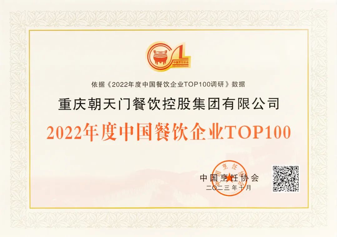 2022年度中國餐飲企業(yè)TOP100第七名,朝天門餐飲控股集團(tuán)連續(xù)11年獲此殊榮!