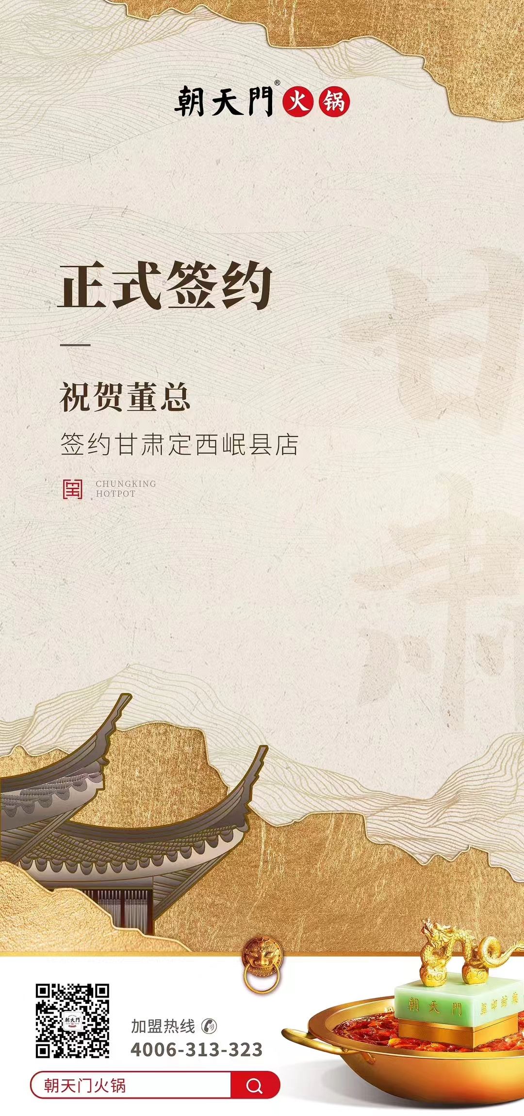 基于以上火鍋品牌優勢,董總堅定地選擇了朝天門火鍋,朝天門也非常榮幸,多了一位優秀可靠的合作伙伴加入我們,相信在雙方的共同努力下,朝天門火鍋將在甘肅市場定會快速嶄露頭角,經營得紅紅火火,在此,也預祝甘肅定西岷縣店開業大吉,客似云來!